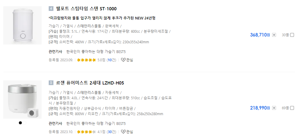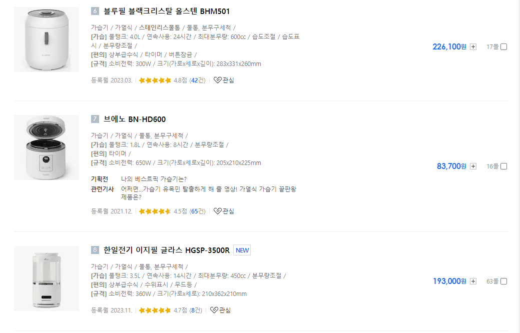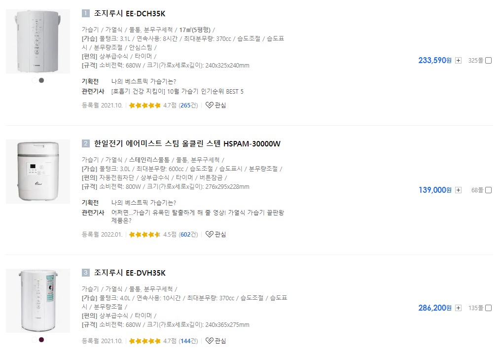 혹시라도 가습기 선택에 도움이 되었으면 합니다.