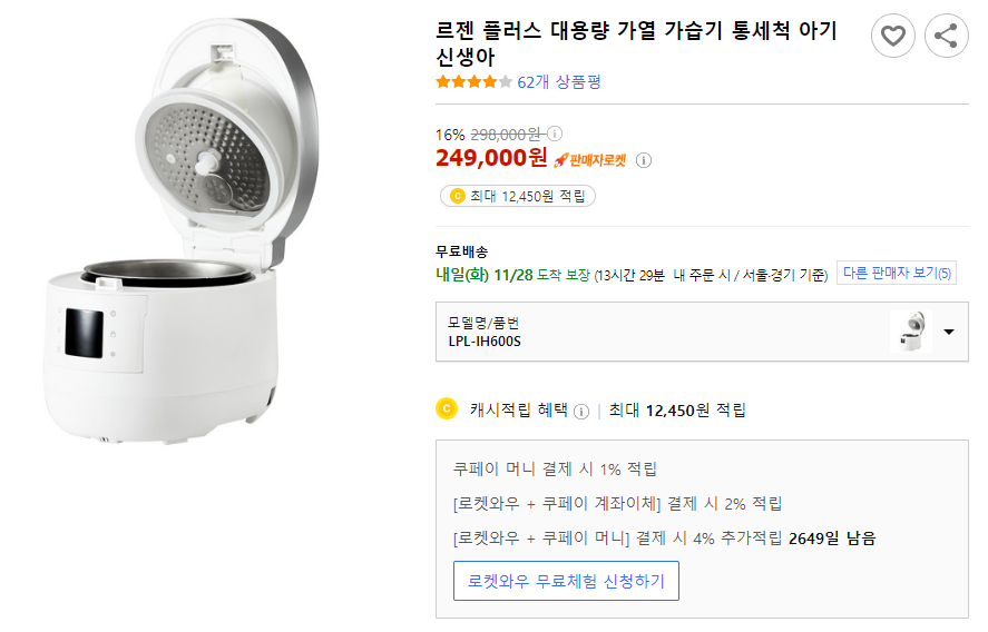 쿠팡 링크를 통해 일정액의 수수료를 제공받을 수 있습니다. 하지만 물건 가격이 바뀌지는 않더라구요!