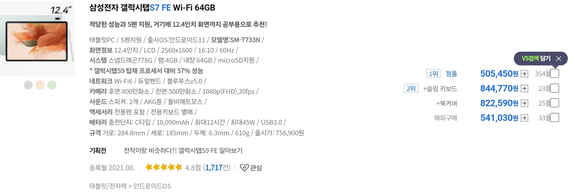 구매팁: 당근에서 중고로 S7 FE를 산다 / 새제품은 무조건 S9 FE / 조금 더 돈 쓴다면 S9도 좋은 보기