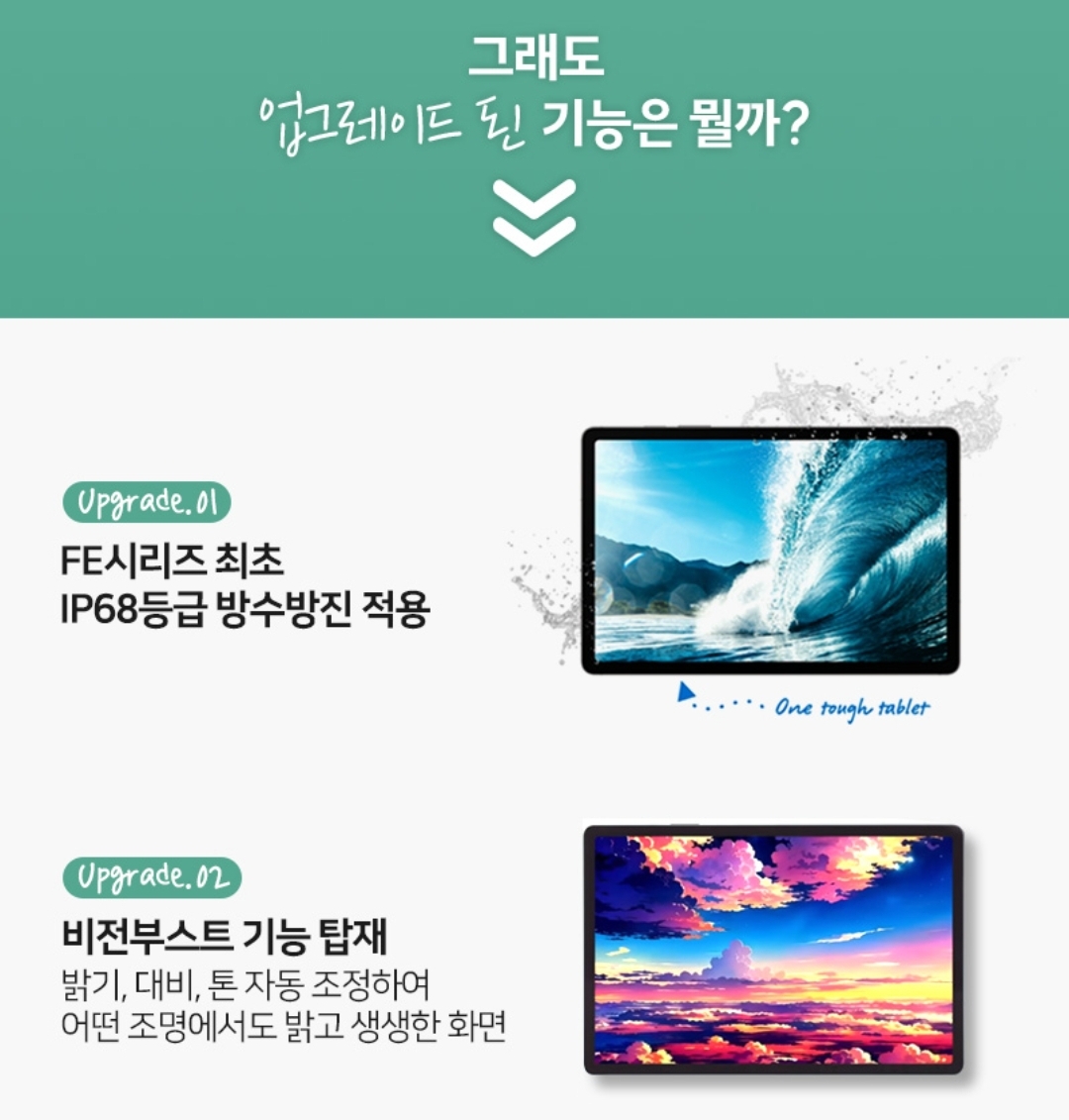 참고할 점: S7 FE는 방수 방진 미지원, S9 FE는 지원
