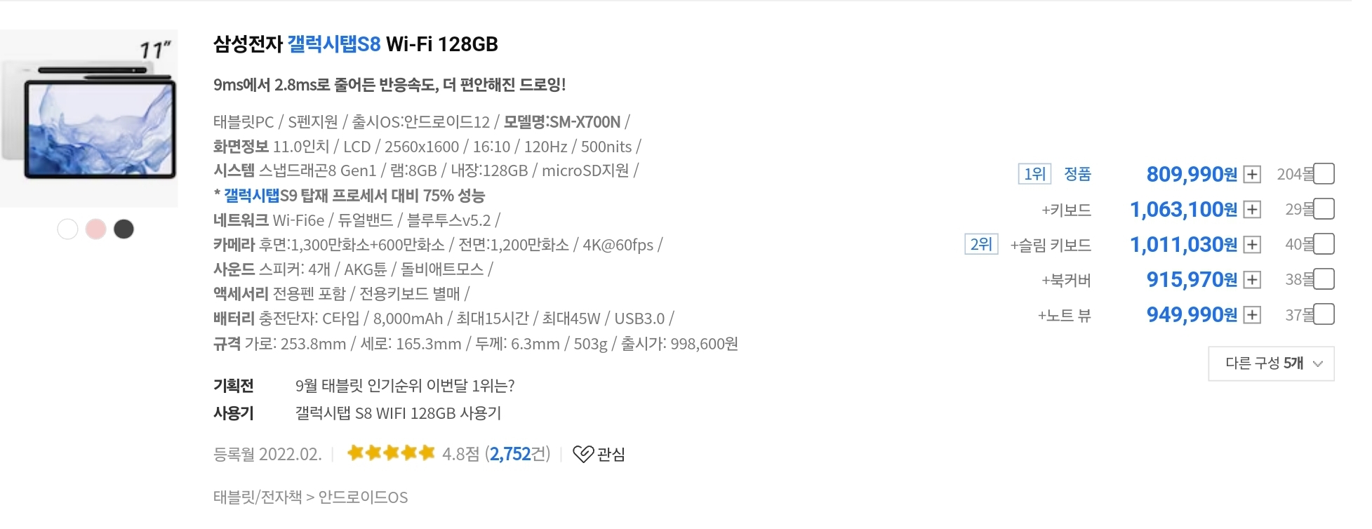 50만원 이하의 태블릿은 가격 경쟁력이 있어보인다.