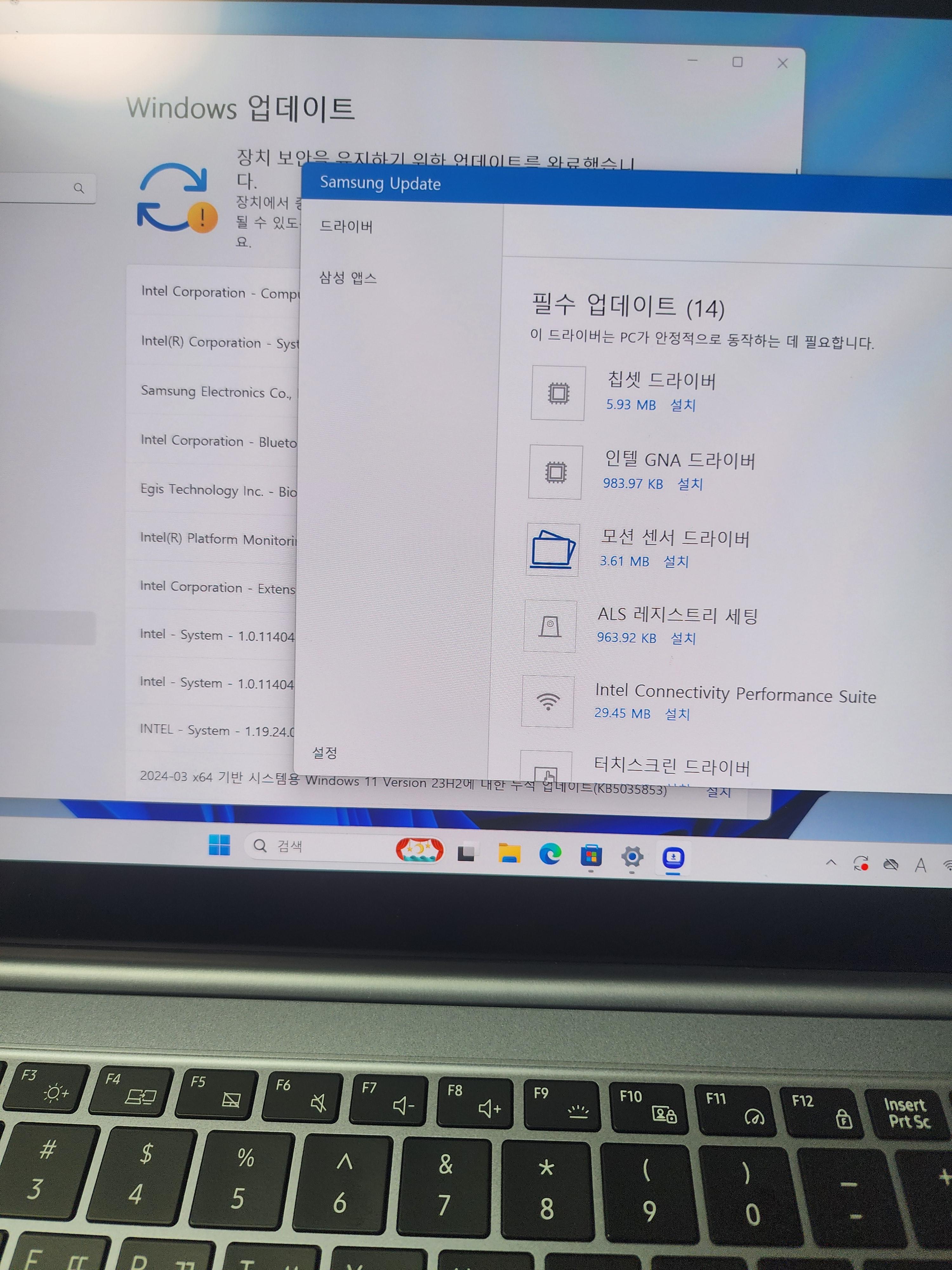 충돌이 있을 수도 있으니 윈도우 업데이트 끝내고 삼성업데이트 하는 걸로~
