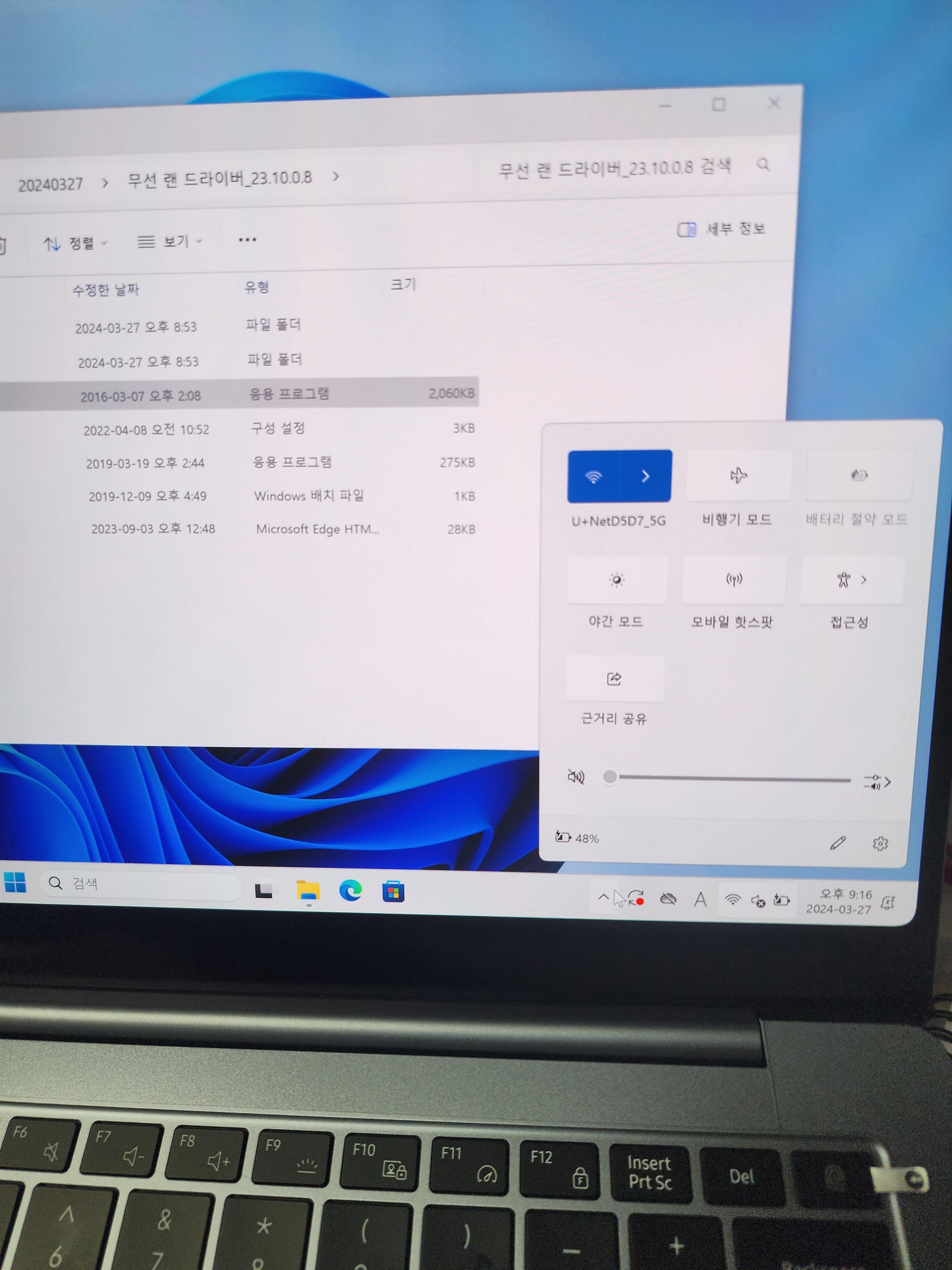 압축 풀고 설치 파일 복사 후에 노트북에서 설치해야 합니다.