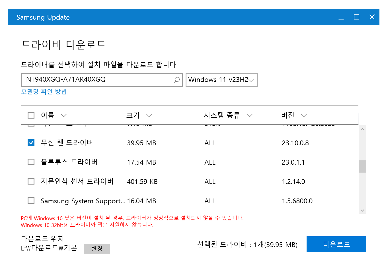 그래서 무선랜카드 드라이버 찾으러 삼성 서비스센터를 기웃거린 결과 방법을 설명하는 글을 찾았습니다....
