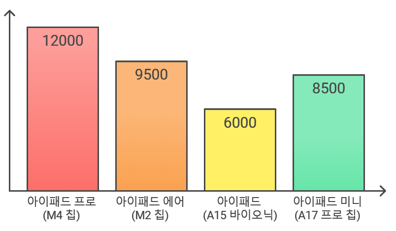 | 아이패드 미니 | A17 Pro | 8500 | 9500 |