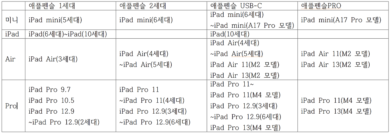 - 실질적으로 3세대 모델. 2024년에 출시한 아이패드 모델부터 지원합니다.