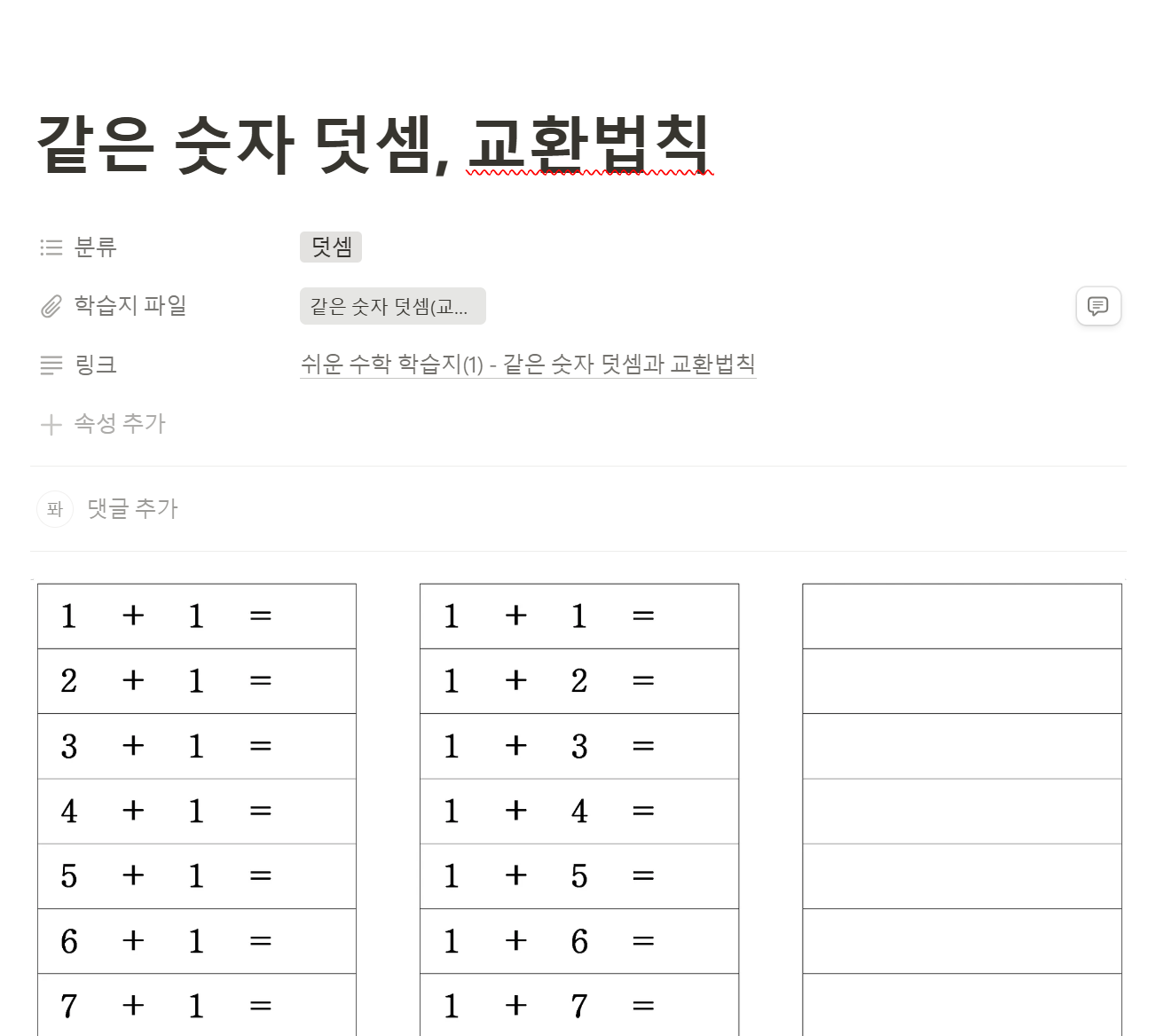 노션 페이지에 학습지 파일을 직접 업로드할 수 있으며, 각 파일 옆에 간단한 설명을 추가할 수 있습니다. 예를 들어: