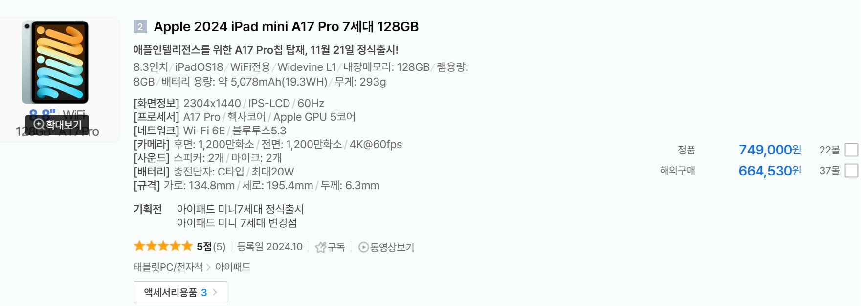 애플이 3년 만에 선보이는 아이패드 미니 7세대(A17 Pro)의 정식 판매가 시작되었습니다. 이번 신제품은 전작인 아이패드 미니 6세대에 비해 성능과 기능 면에서 많은 향상이 이루어졌습니다. 아래에서 주요 개선 사항과 구매 추천 이유, 그리고 사전 예약 혜택에 대해 자세히 살펴보겠습니다.