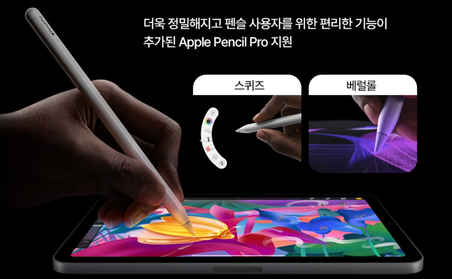 애플 펜슬 프로 지원: 새로운 애플 펜슬 프로를 지원하며, 호버 기능을 통해 더 정밀한 작업이 가능합니다.