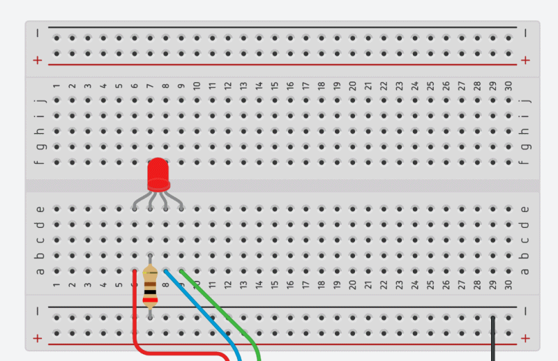 ※ 시뮬레이터의 3색 LED가 R (-) B G 순서라 이렇게 표현한 것이고,