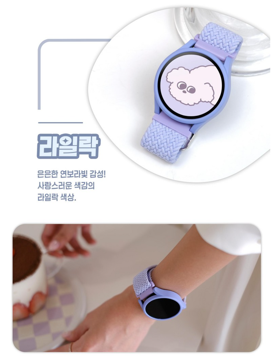 그래서 이왕 포스팅 쓰는 김에 제 개인적으로 편하고 예뻤던 케이스+ 스트랩 세트 추천드릴께요. 아내 선물이라 고급지게 밀레니즈 루프 세트를 샀지만 저는 사실 개인적으로 다른 스타일의 스트랩을 좋아하거든요. 제가 가장 오래 착용했던 스타일은 나일론 소재의 늘어나는 스트랩인 솔로루프 마그네틱 세트, 베이비블루와 라일락 조합은 정말 예쁜거 같아요. 밀착감이 좋아 왠지 삼성헬스 측정이 더 잘 될 거 같은 느낌?? ㅋㅋㅋㅋ 약간 늘어나는 나일론 소재가 촥 밀착되는거 같아서 편하긴 한데 ㅠㅠ 아무래도 니트소재라 늘어남과 얼룩이 있기도 하죠.... 저는 애용하는 밴드였습니다.