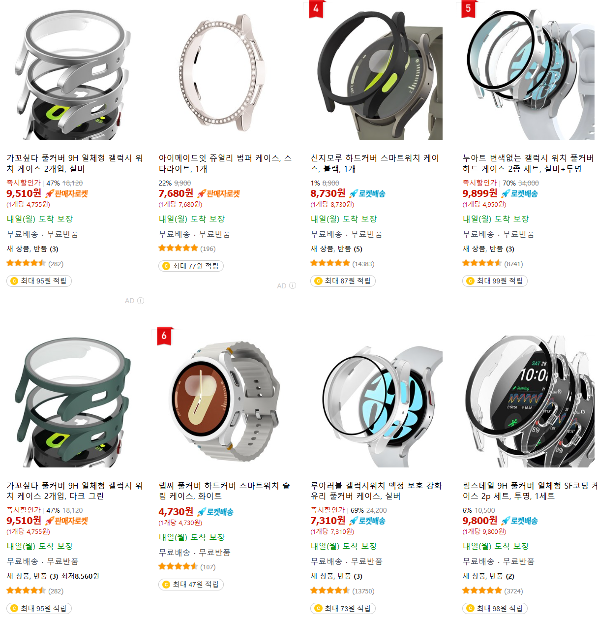 저는 갤럭시워치4를 쓸 때는 강화유리를 썼습니다. 만족스러웠지요. 그런데 이번에 케이스를 검색하다보니 이상하게 풀커버 케이스가 많더라구요