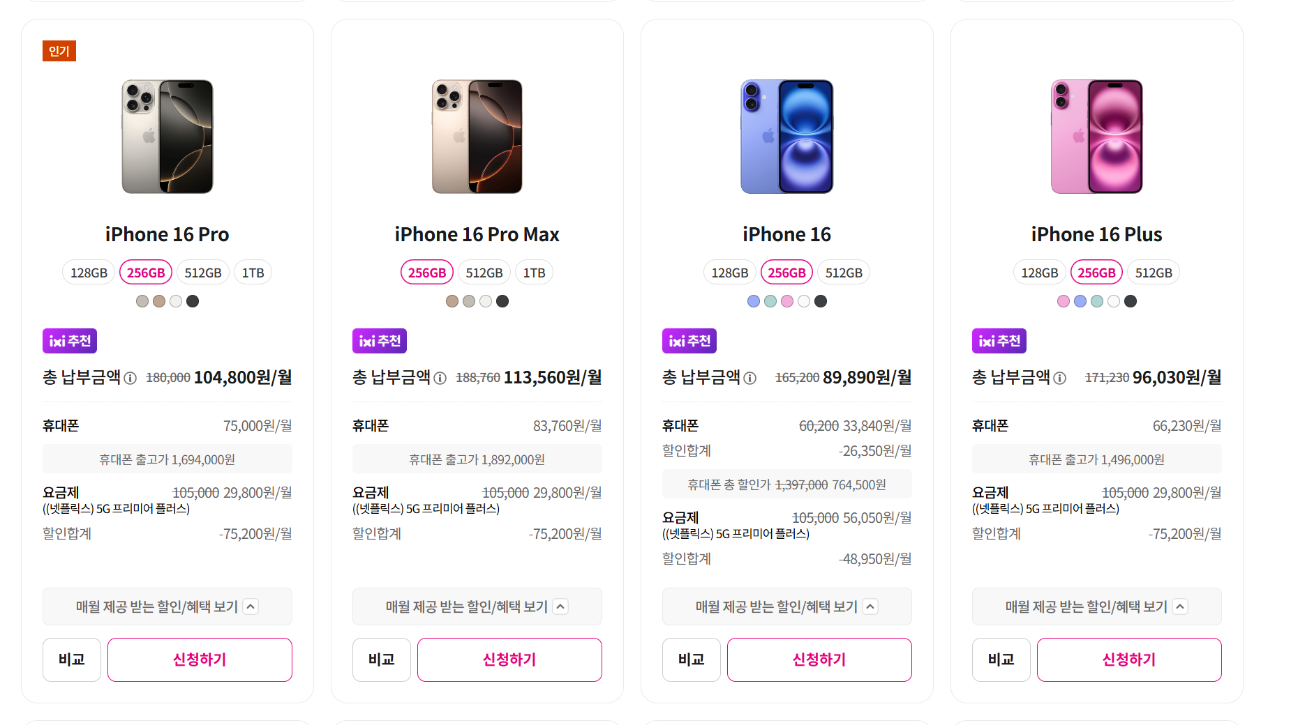 유플러스 공홈에서도 볼 수 있듯이 아이폰 16 자체 할인 금액이 어마합니다.