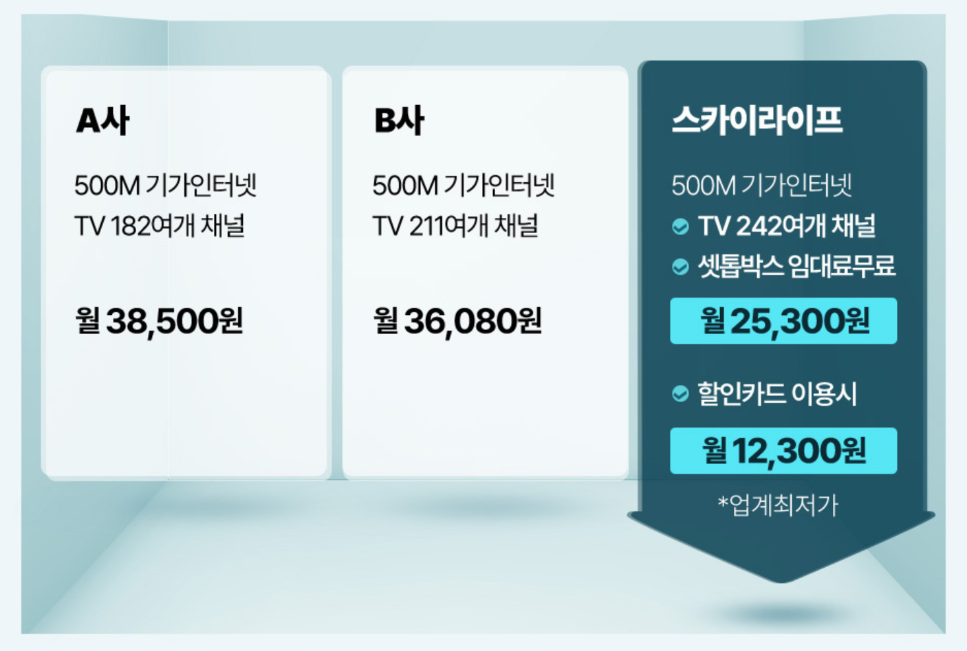 그래서 상담 중에 검색해봤습니다. 제일 저렴하다는 케이블 티비를요