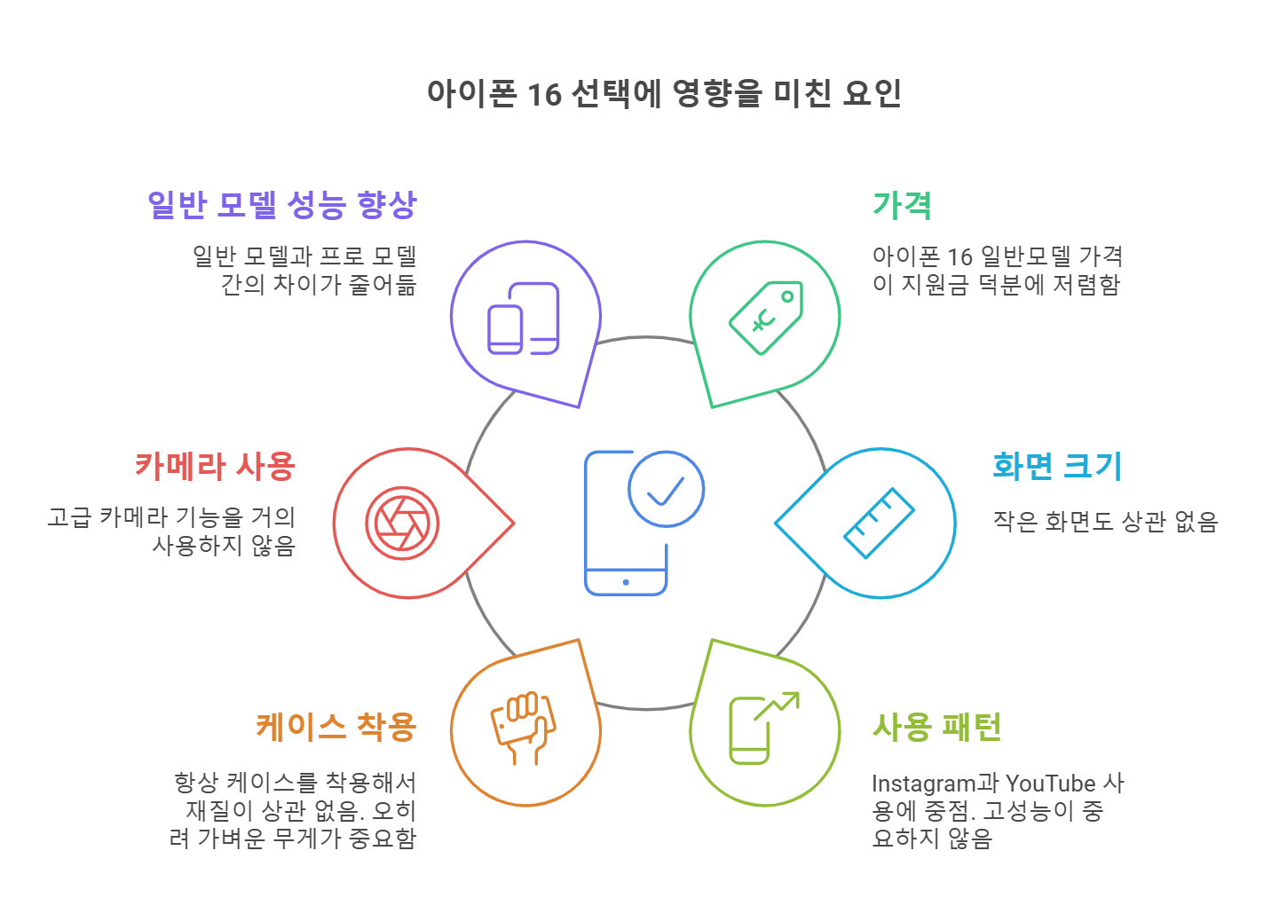 최종적으로 아내는 아이폰 16 일반 모델을 선택했습니다. 그 이유는 다음과 같습니다.