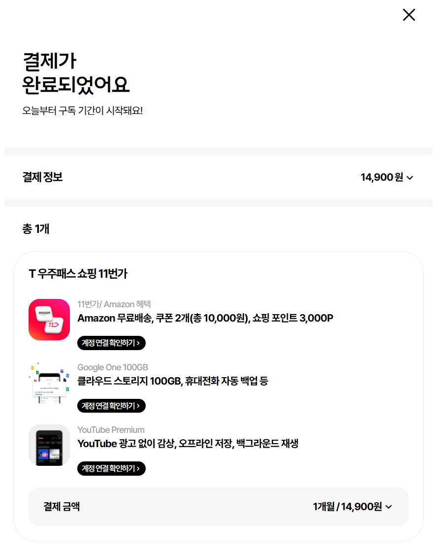 우주패스 = 쇼핑포인트3000원 + 아마존쿠폰 2장 + 구글원 + 유튜브 14900원