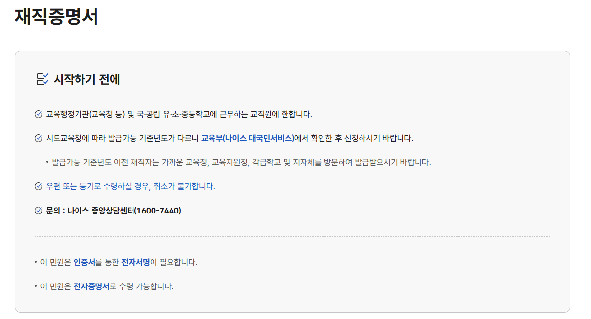 교사 재직증명서는 정부24 민원으로 준비하실 수 있습니다.