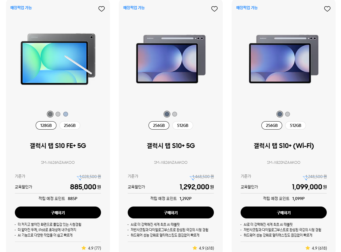 갤럭시 공식 홈페이지가 인터넷 최저가보다 싼 것은 아니지만