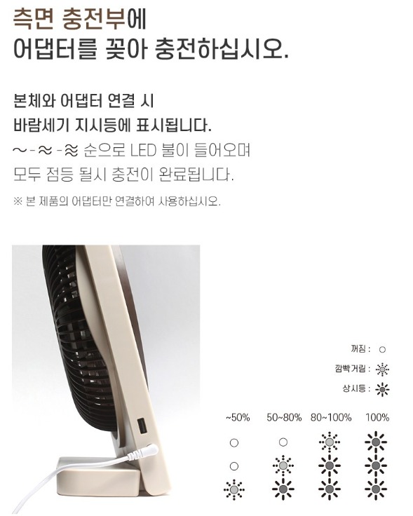 - 10인치(약 25 cm), 7엽 팬으로 휴대용 선풍기치고는 굉장히 큰편입니다.