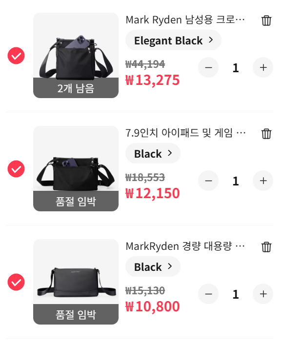 (알리 제품이며, 네 개 모두 2만원 아래 가방입니다.)