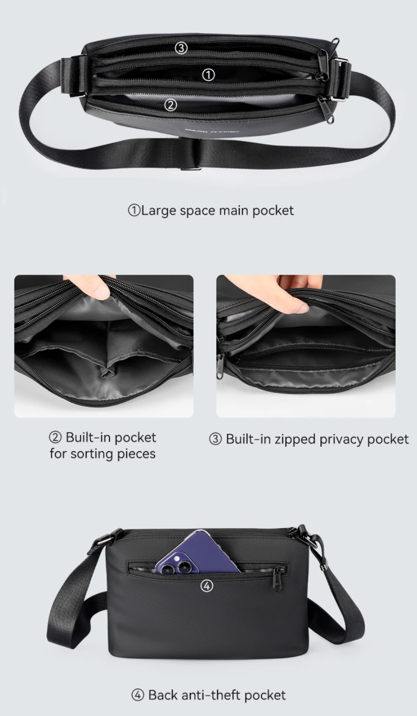 Mark Ryden Water-Resistant Crossbody Bag For Modern Go-Getter Available in Three Colors Lightweight and Simple men shoulder bag
