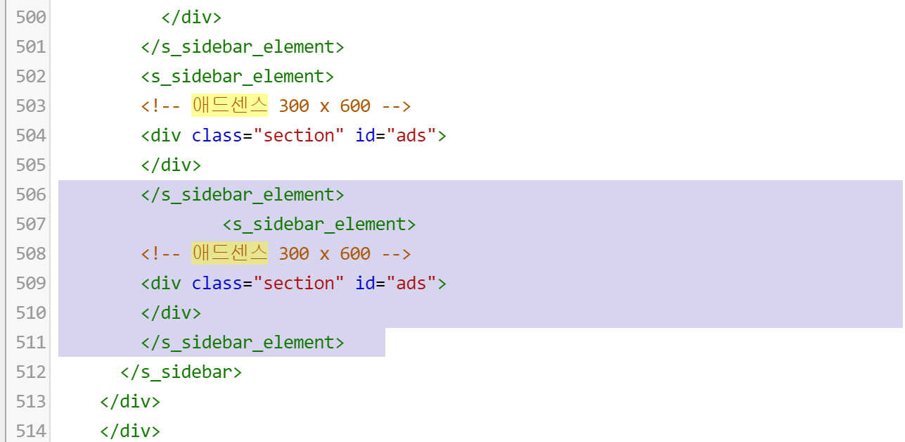 이거와 사이드바 최 하단에 광고 (300*600) 자리가 있었다.