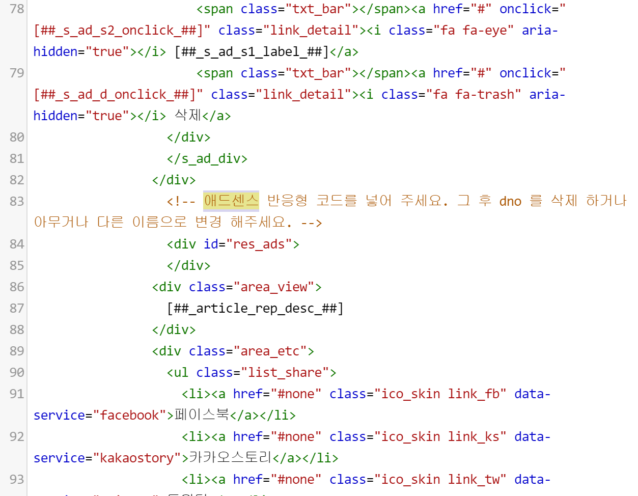 먼저 내가 쓴 스킨에는 총 세 군데의 광고 자리가 있었다.