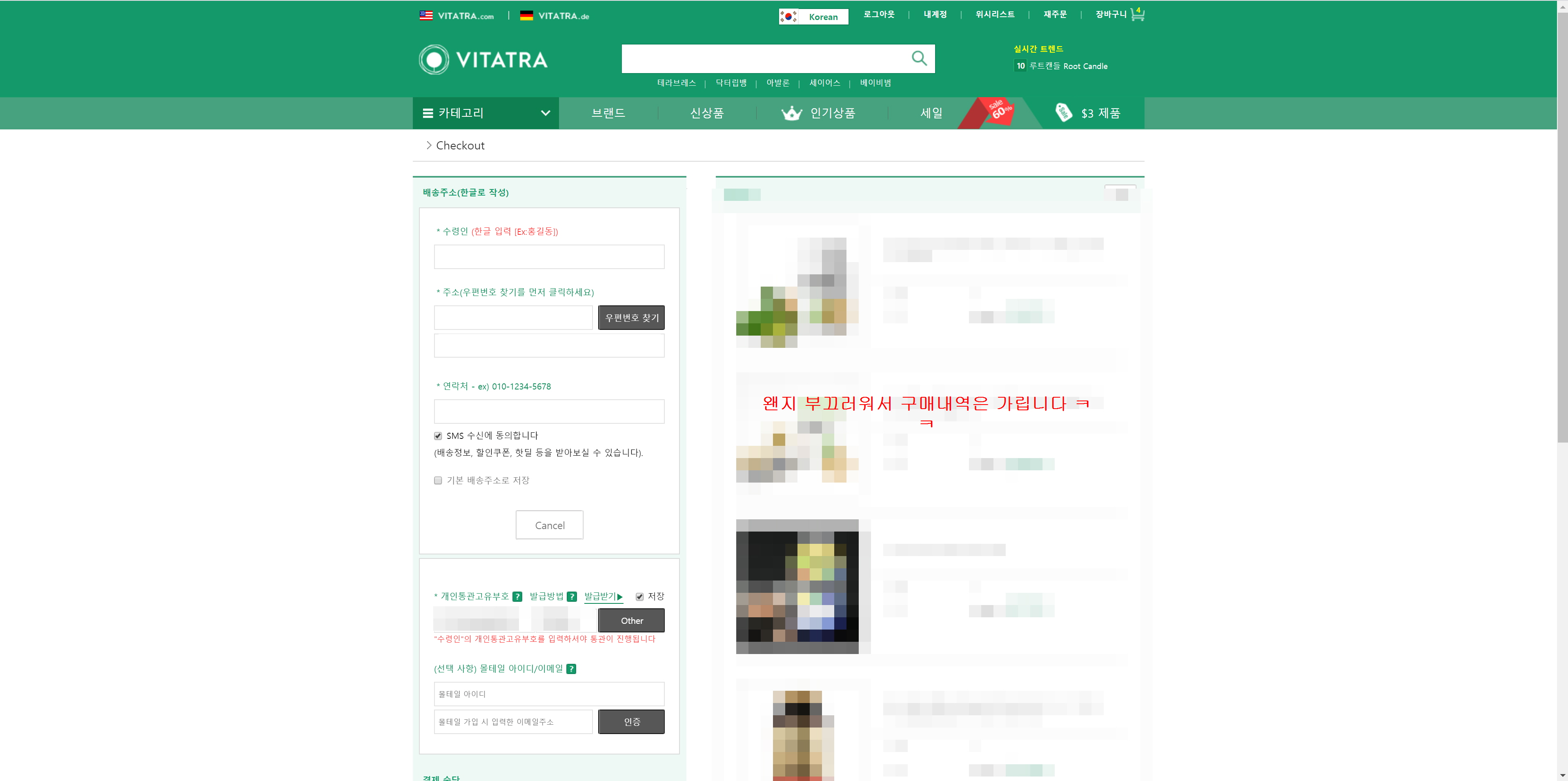 - 비타트라 주문 후 7일 이내(영업일 기준)에 비타트라및 해외 쇼핑몰에서 주문시에는 합산과세의 위험이 있으므로, 주문하신 건이 통관완료되면 주문해주시기 바랍니다.