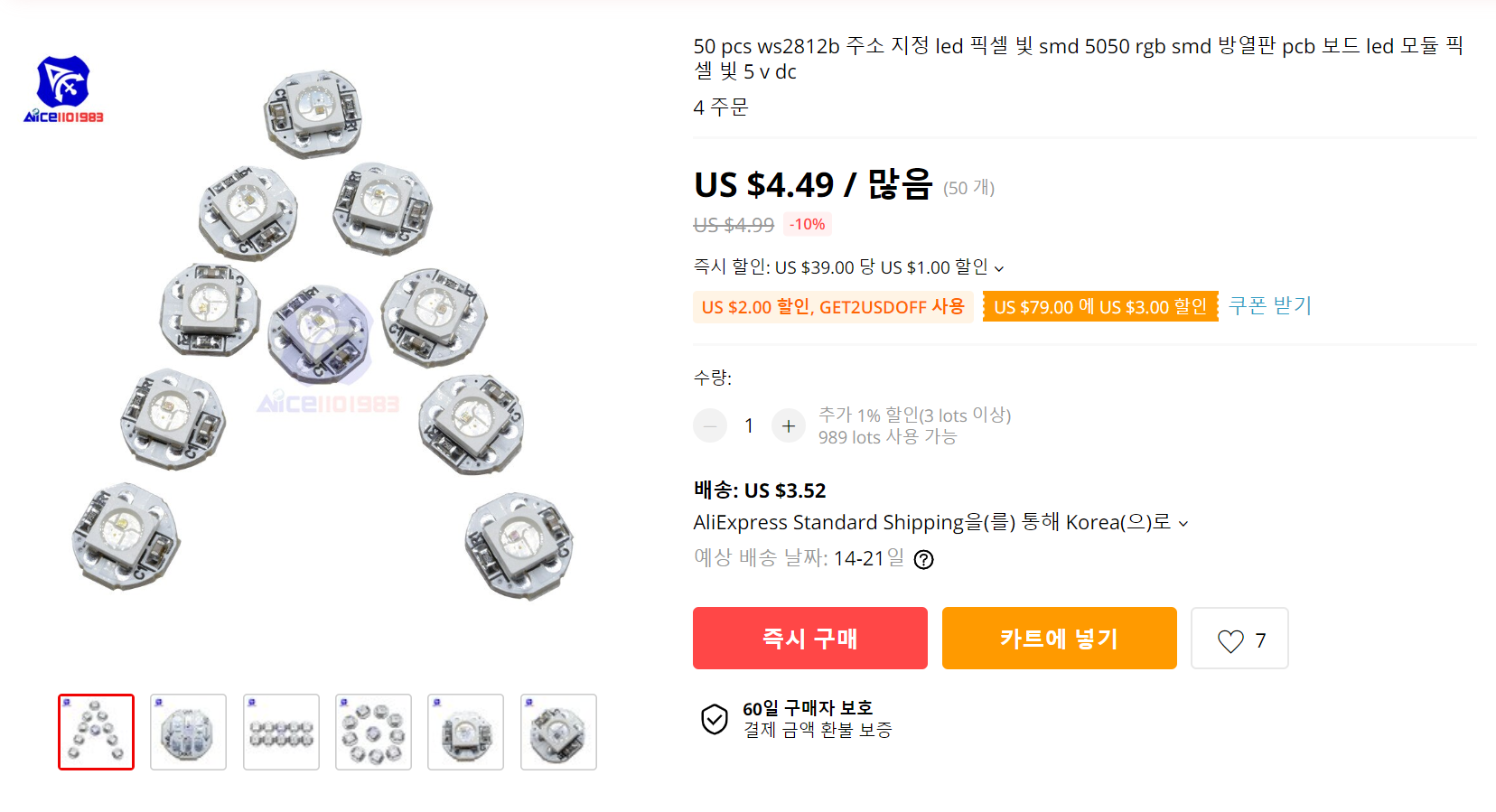그렇게 때문에 네오픽셀과 관련해서는 더 저렴하고 좋은 제품들도 많으니