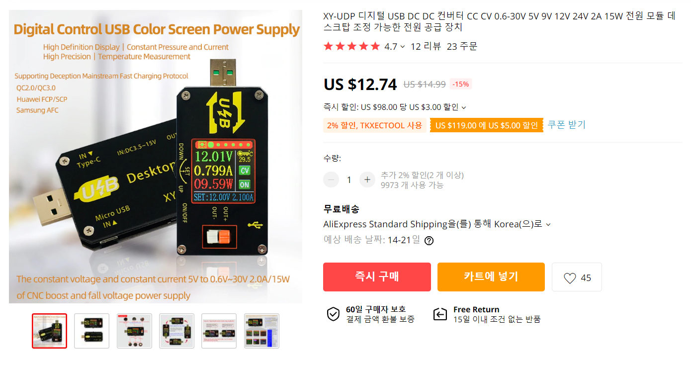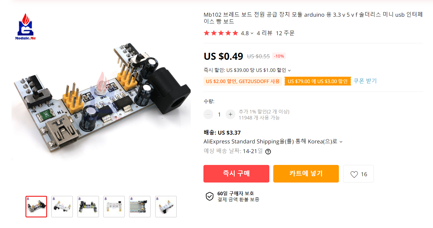 5v공급으로도 문제가 없는지 테스트 해보기 위해 구매하였다.