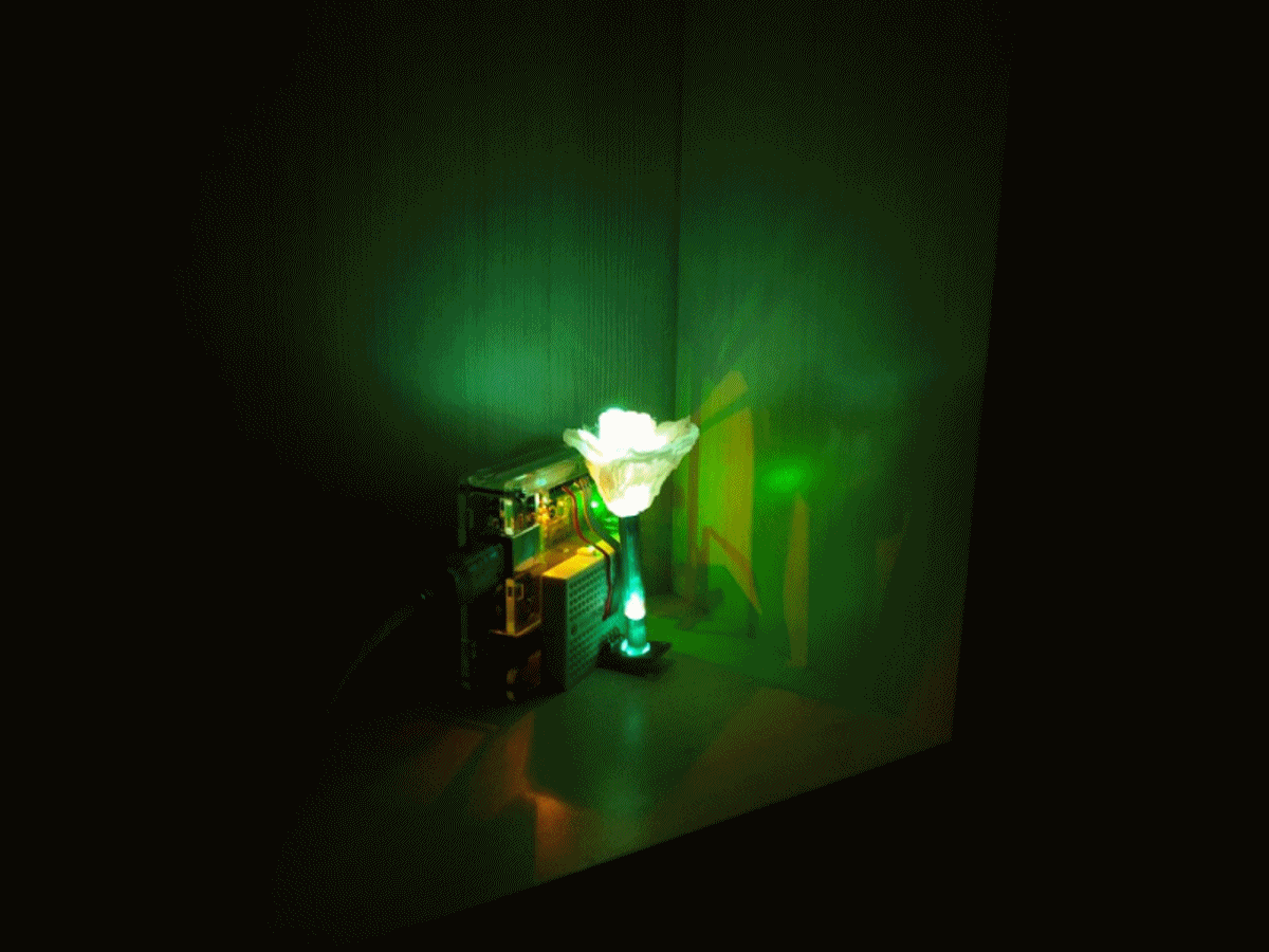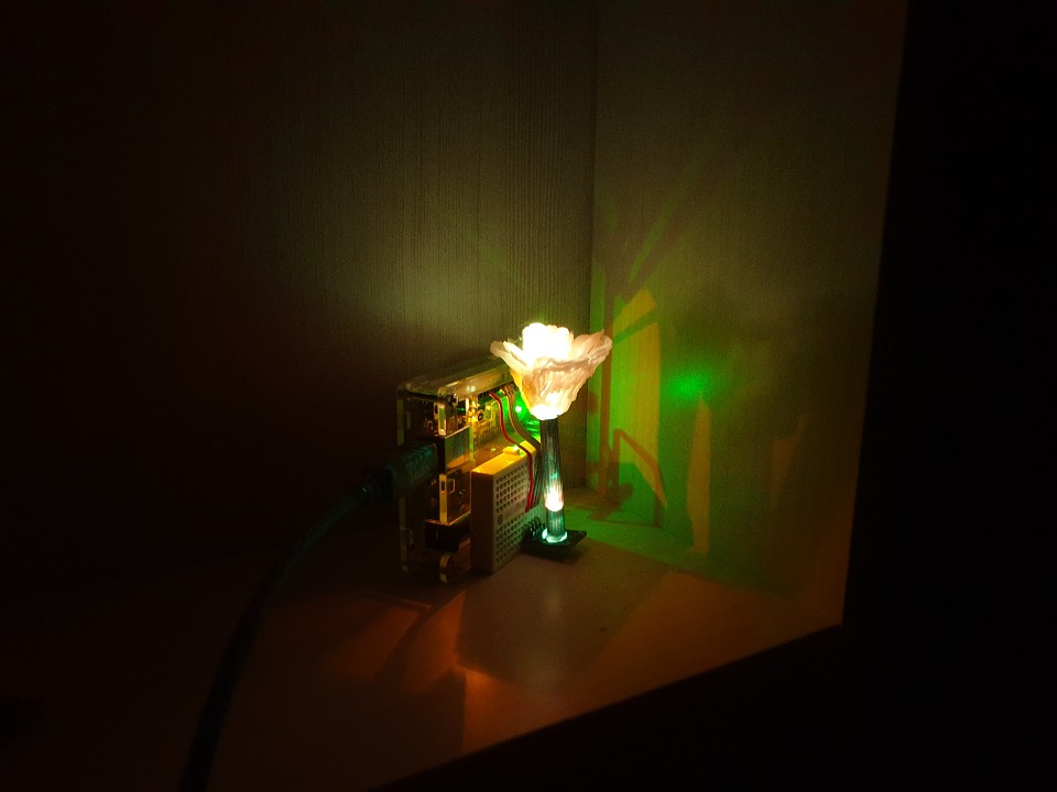 3색 LED를 연결하였으며 아두이노로 랜덤한 불빛이 1초마다 바뀌게 명령을 넣었다.
