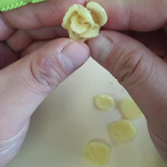 곡면을 기대하고 접착제 케이스에서 꽃잎을 만들었지만