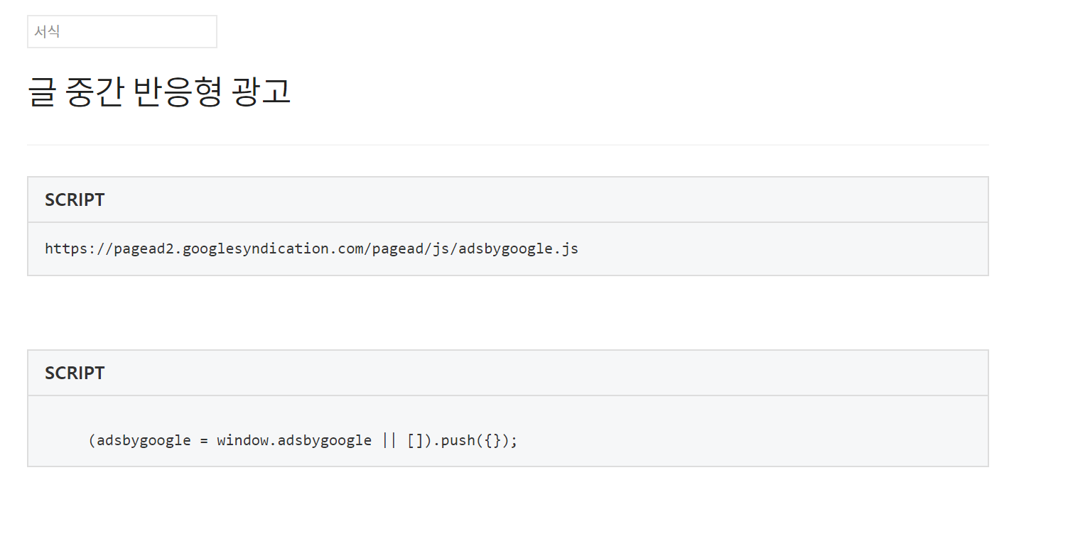 수동으로 글에 광고를 넣는 법을 공부했다.