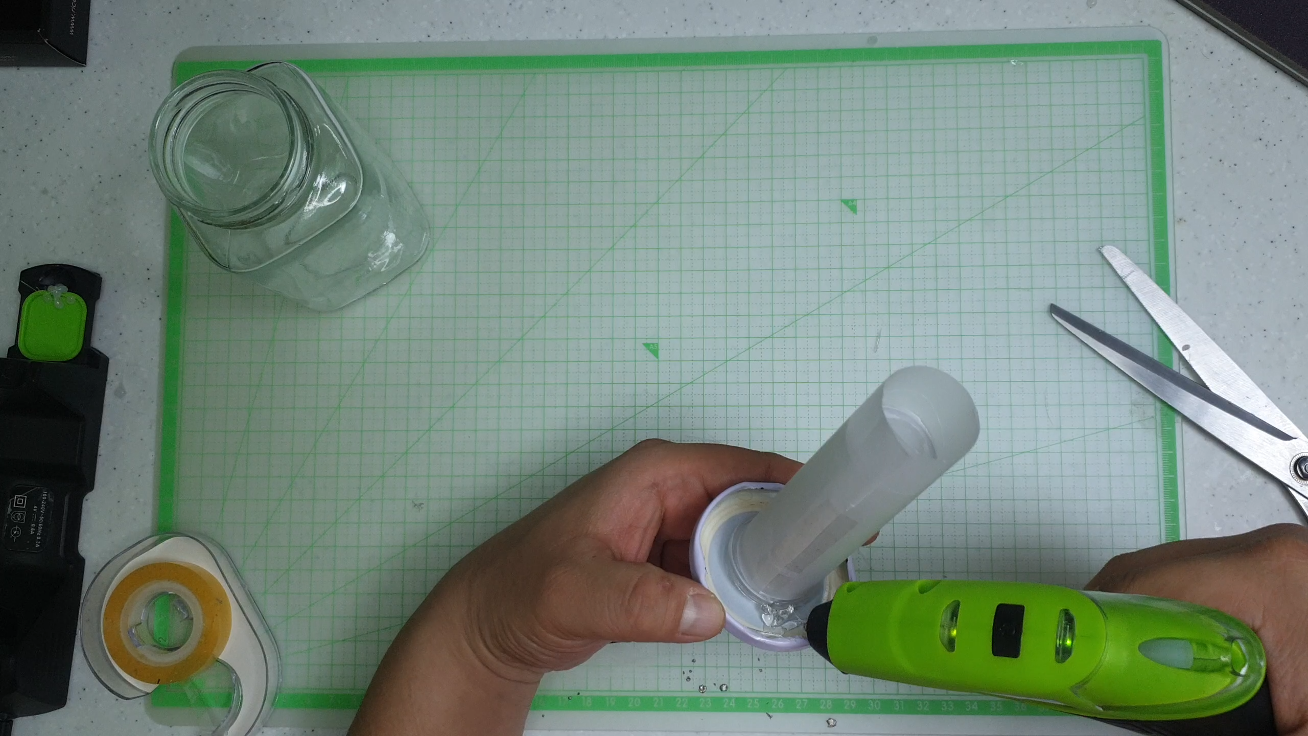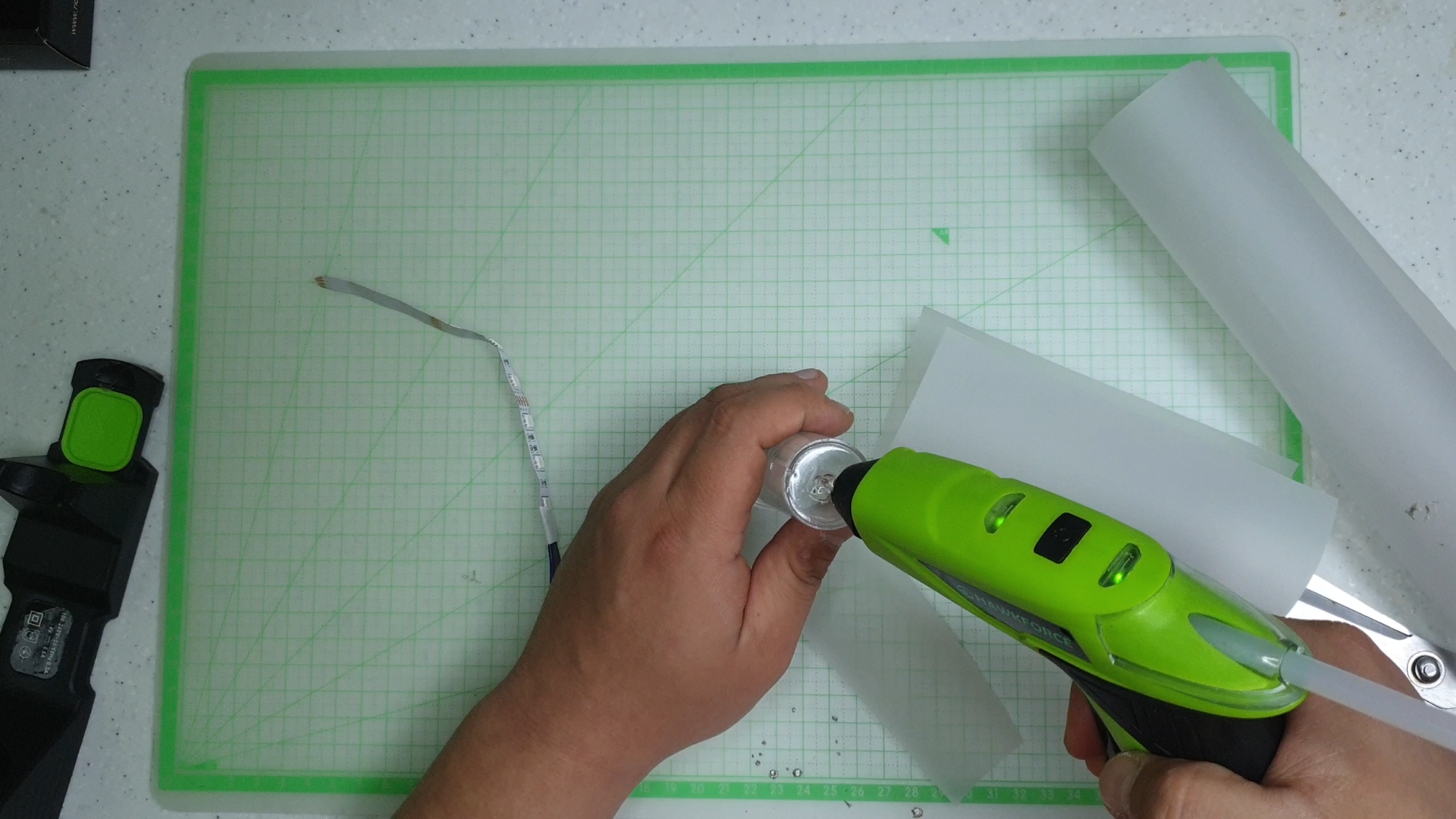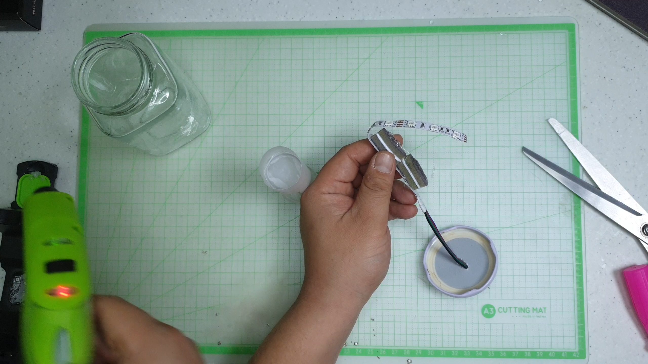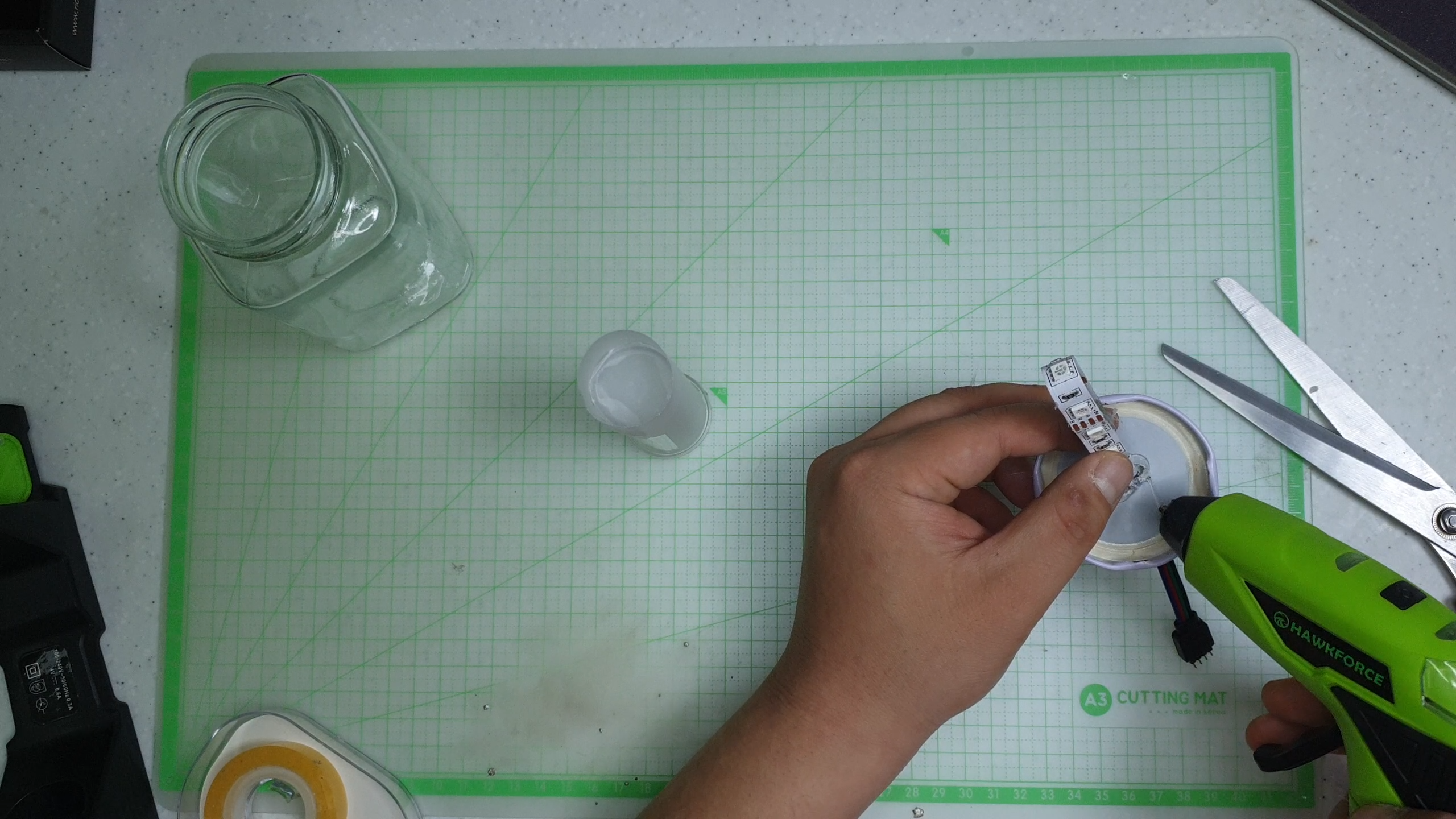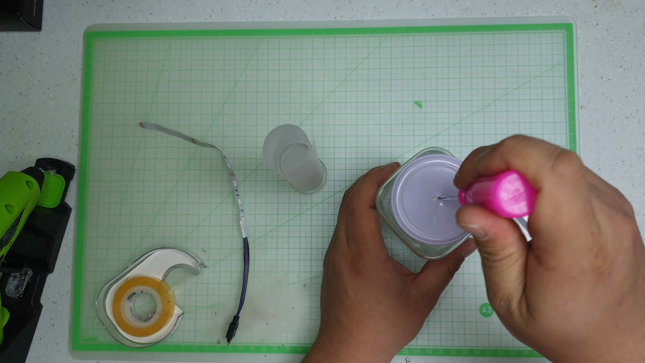 송곳을 이용하여 뚜껑에 구명을 여러개 뚫어줘서 LED가 지나갈 수 있도록 하자