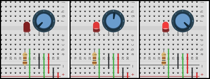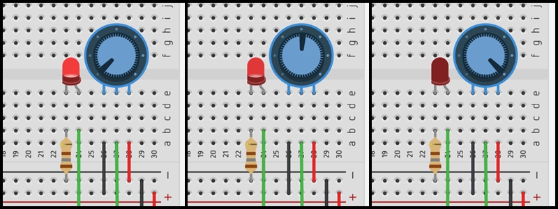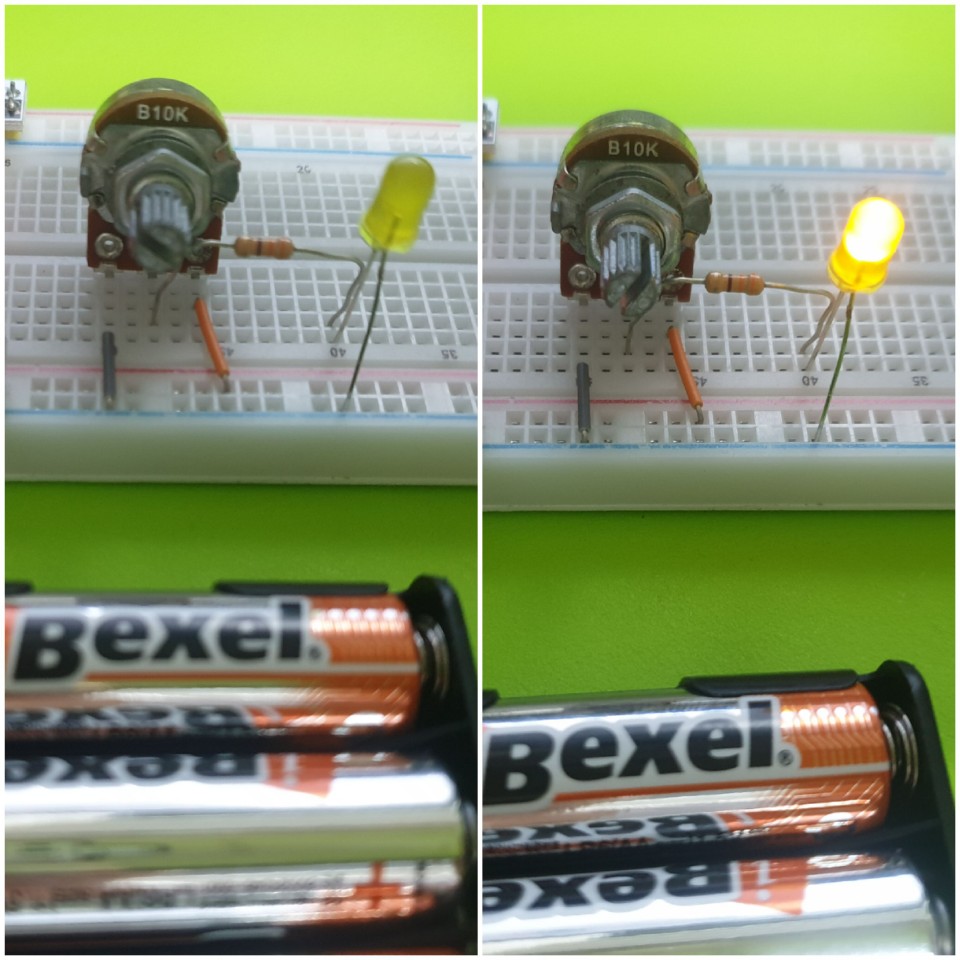 조잡한 회로를 만들어 아두이노와 연결하지 않고 가변저항을 작동시켜보았다.