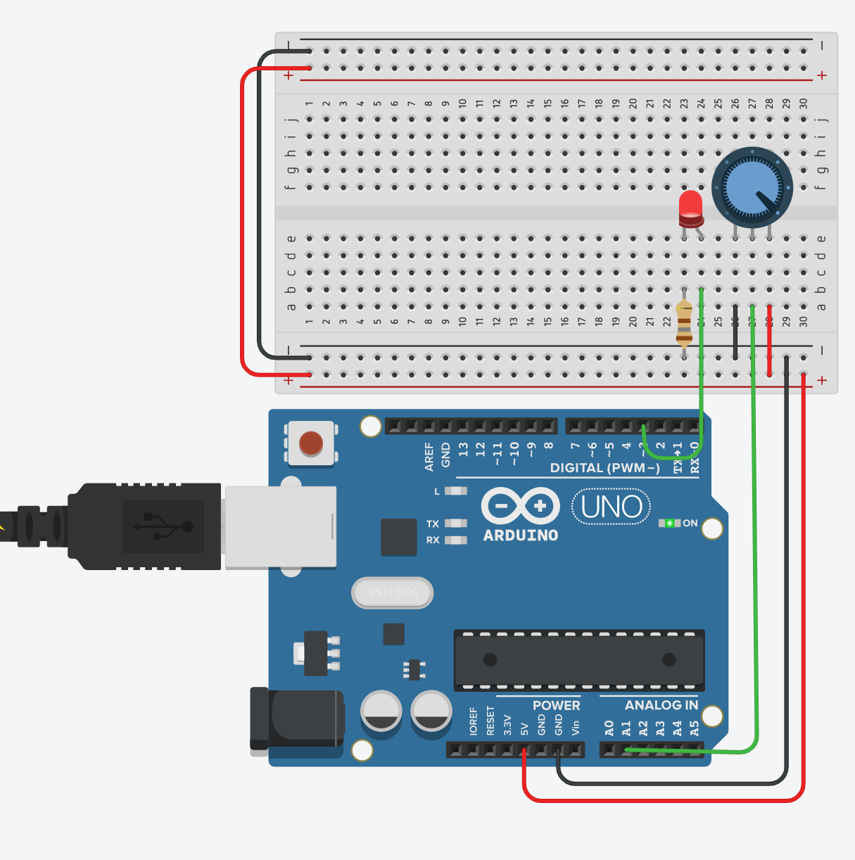 읽어들인 값을 이용하여 LED의 밝기를 조절하는 회로도이다.