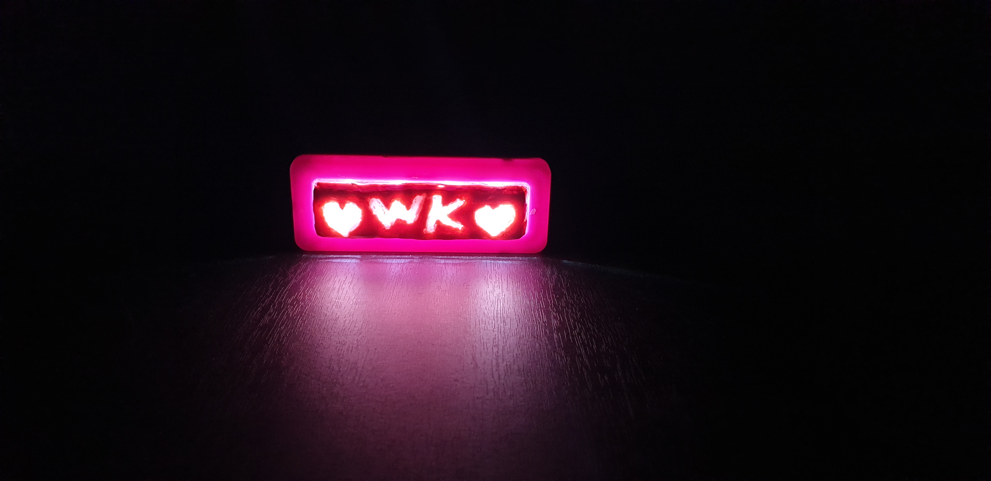 투명색에 은은하게 물든 형광레드 빛깔이 나름 매력적인 조명으로 완성