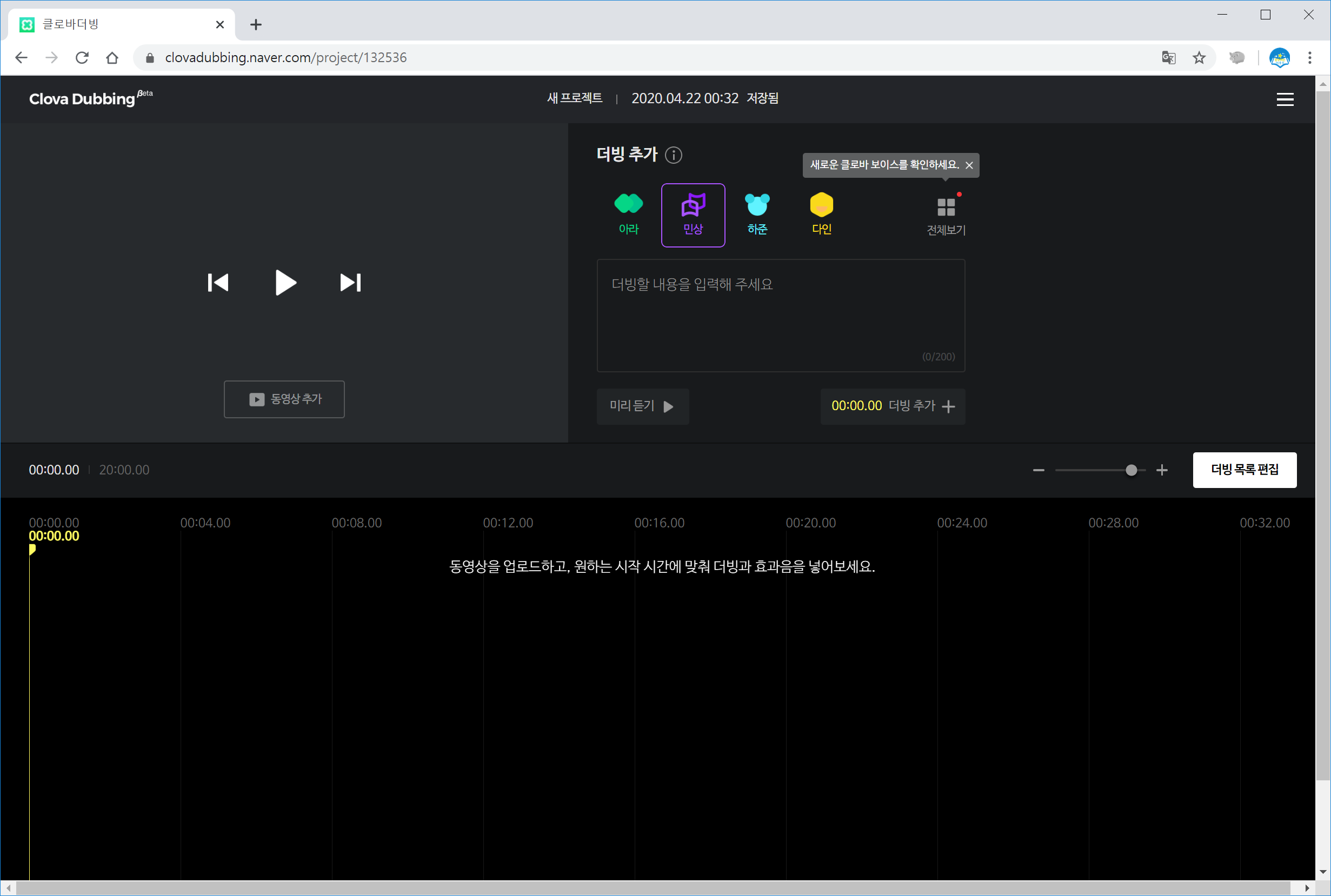 더빙이라는 컨셉답게 반드시 영상이 있어야 한다.