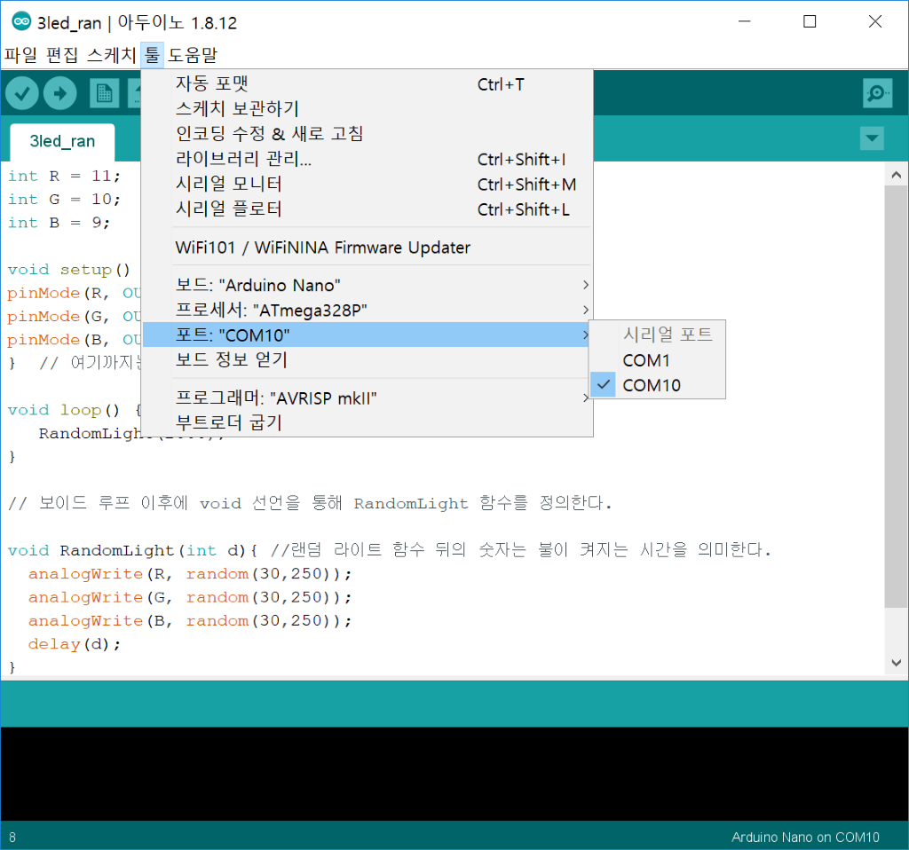 3. 아두이노 나노 보드로써 작동 잘됨